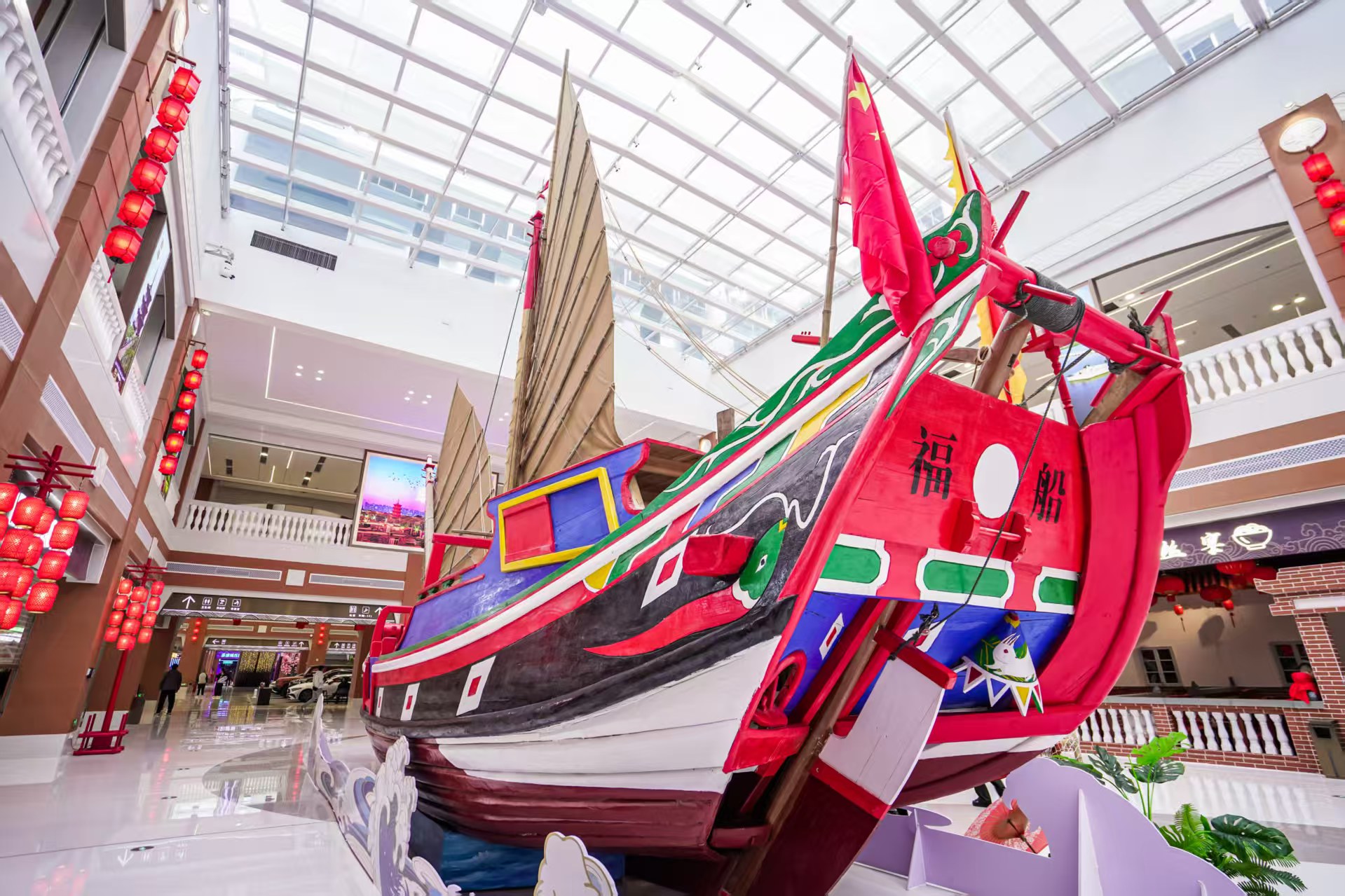 服務(wù)區(qū)以“宋元傳福·絲路驛站”為主題,融合閩南騎樓建筑、文化長廊與農(nóng)業(yè)景觀,打造傳統(tǒng)文化與現(xiàn)代科技交融的文化體驗(yàn)空間,涵蓋蟳埔簪花、南音展演、VR體驗(yàn)館和數(shù)字娛樂等項(xiàng)目。業(yè)態(tài)布局突出“服務(wù)區(qū)+文旅+商貿(mào)”多元融合,引入麥當(dāng)勞、星巴克、驛佳購便利店、進(jìn)口商品館、閩臺館、服裝特賣店及全省首家服務(wù)區(qū)主題影院——萬星幾何影城等多項(xiàng)經(jīng)營業(yè)態(tài)。公共服務(wù)配備“5+1”綜合服務(wù)中心(黨群服務(wù)中心、軍人驛站、司機(jī)之家、自駕游驛站、ETC服務(wù)中心,警務(wù)工作服務(wù)站),并設(shè)第三衛(wèi)生間、母嬰室等人性化服務(wù)設(shè)施。通過智慧化管理平臺,集成安防保護(hù)、信息化查詢、智慧導(dǎo)游等功能,提升服務(wù)效率。
