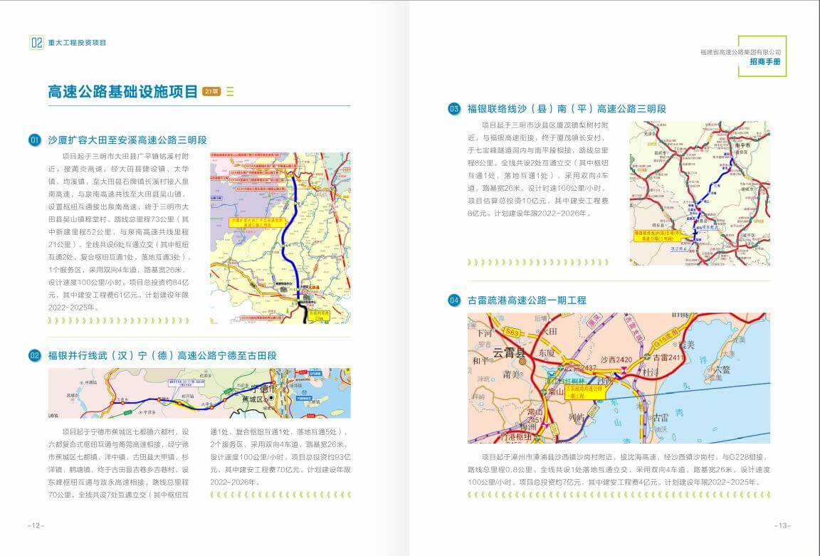 1.沙廈擴容大田至安溪高速公路三明段:項目起于三明市大田縣廣平鎮(zhèn)銘溪村附近,接莆炎高速,經(jīng)大田縣建設鎮(zhèn)、太華鎮(zhèn)、均溪鎮(zhèn),至大田縣石牌鎮(zhèn)長溪村接入泉南高速,與泉南高速共線至大田縣吳山鎮(zhèn),設置樞紐互通接出泉南高速,終于三明市大田縣吳山鎮(zhèn)程堂村。路線總里程73公里(其中新建里程52公里,與泉南高速共線里程21公里)。全線共設6處互通立交(其中樞紐互通2處,復合樞紐互通1處,落地互通3處),1個服務區(qū),采用雙向4車道,路基寬26米,設計速度100公里/小時。項目總投資約84億元,其中建安工程費61億元。計劃建設年限2022-2025年。