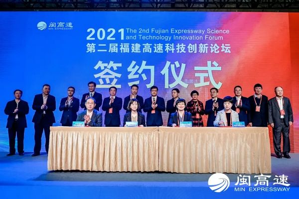 論壇上,省交通運(yùn)輸廳副廳長王增賢、交通運(yùn)輸部行業(yè)研發(fā)中心秘書長王先進(jìn)發(fā)表致辭。論壇啟動(dòng)了交通運(yùn)輸部行業(yè)研發(fā)中心智能建造重大專項(xiàng),“中科院無人機(jī)應(yīng)用與管控研究中心福建高速科創(chuàng)基地、華為-福建高速聯(lián)合創(chuàng)新實(shí)驗(yàn)室”揭牌。同時(shí),集團(tuán)還與中國聯(lián)通、中信科、百度、國開行福建分行、興業(yè)銀行、興業(yè)證券等單位分別簽訂了戰(zhàn)略合作協(xié)議。