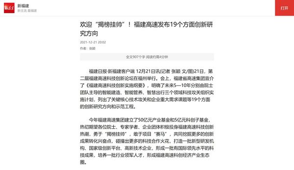 歡迎“揭榜掛帥”!福建高速發(fā)布19個方面創(chuàng)新研究方向