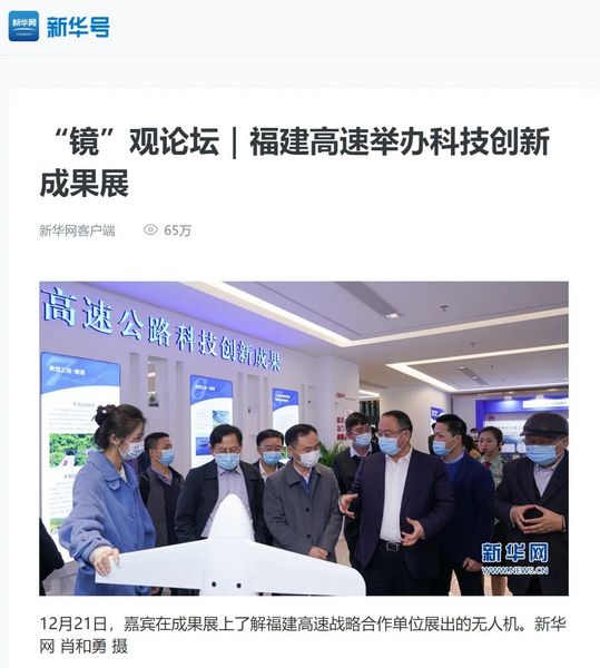 12月21日,嘉賓在成果展上了解福建高速戰(zhàn)略合作單位展出的無人機。新華網(wǎng) 肖和勇 攝