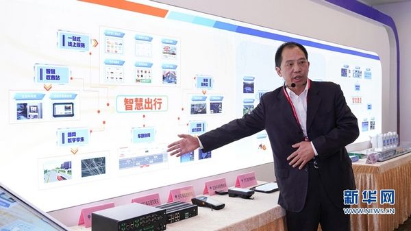 12月21日,福建省高速公路集團有限公司總工程師陳禮彪向嘉賓介紹福建高速科技創(chuàng)新成果。新華網(wǎng) 肖和勇 攝