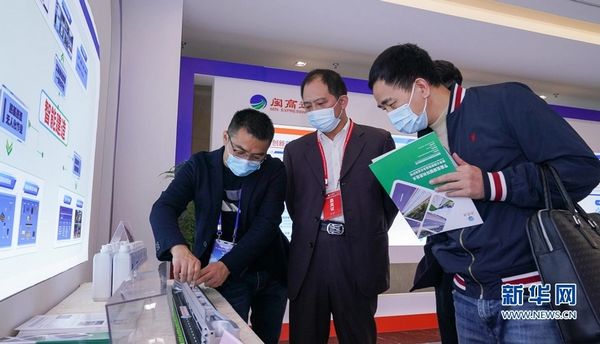 12月21日,嘉賓通過展板了解福建高速科技創(chuàng)新體系。新華網(wǎng) 肖和勇 攝