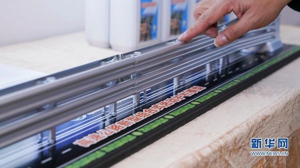 這是成果展上展出的高速公路新型組合式活動護(hù)欄模型(12月21日攝)。新華網(wǎng) 肖和勇 攝