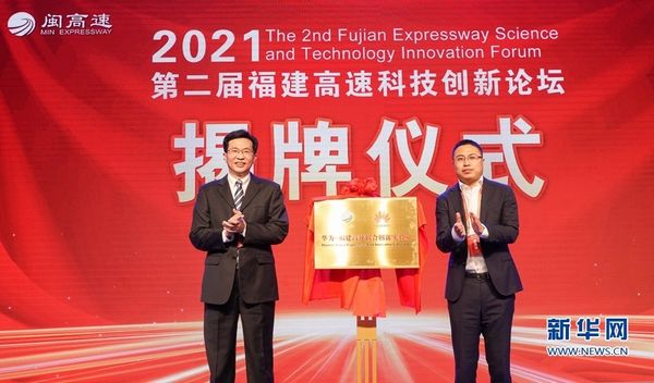 這是華為-福建高速聯(lián)合創(chuàng)新實驗室揭牌儀式(12月21日攝)。新華網(wǎng) 肖和勇 攝